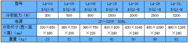 ■ LA–□B(Q)- H控制箱溫度濕度調節機規格及參數: