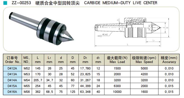 ZZ-00253-硬質合金中型回轉頂尖