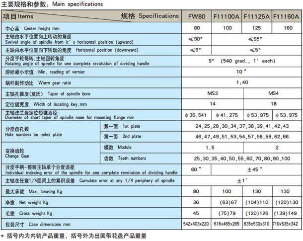 FW80型、F11系列萬能分度頭