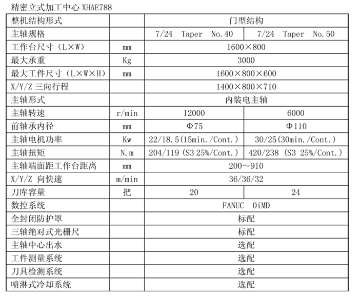 XHAE788精密立式加工中心,適用于航空、航天、模具、箱體、機械等行業黑色金屬、鋁合金等各種零件的粗、精加工。機床配置FANUC 0iMD高性能數控系統。