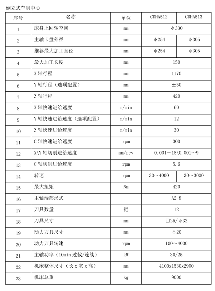 CDHA512/CDHA513倒立車削加工中心是我廠引進國外成熟技術合作設計開發,擁有自主知識產權的產品。適用于回轉類零件批量化生產的數控機床。 該機床采用倒立式車主軸。倒立式主軸的工件裝卡方式,有效避免了積屑劃傷已加工表面的缺陷,大為改善了工件加工過程中的排屑性。機床散熱情況好,從而保證了加工件的精度。 本機床配備了回轉刀架,采用伺服電機驅動轉位,液壓拉緊,高精度端齒盤定位,從而保證高精度和高剛性。動力刀塔12個刀位均可配備動力頭(選項配置),從而可以實現鉆、銑、攻絲等加工功能。 本機床帶C軸控制功能,可以實現4軸同步加工(選項配置)。 機床可配有12工位送料機構,主軸可以從物料傳送機構上直接上下料,使加工效率大為提高。可在送料機構上增加自動翻活機構,實現掉頭車的功能(選項配置)。